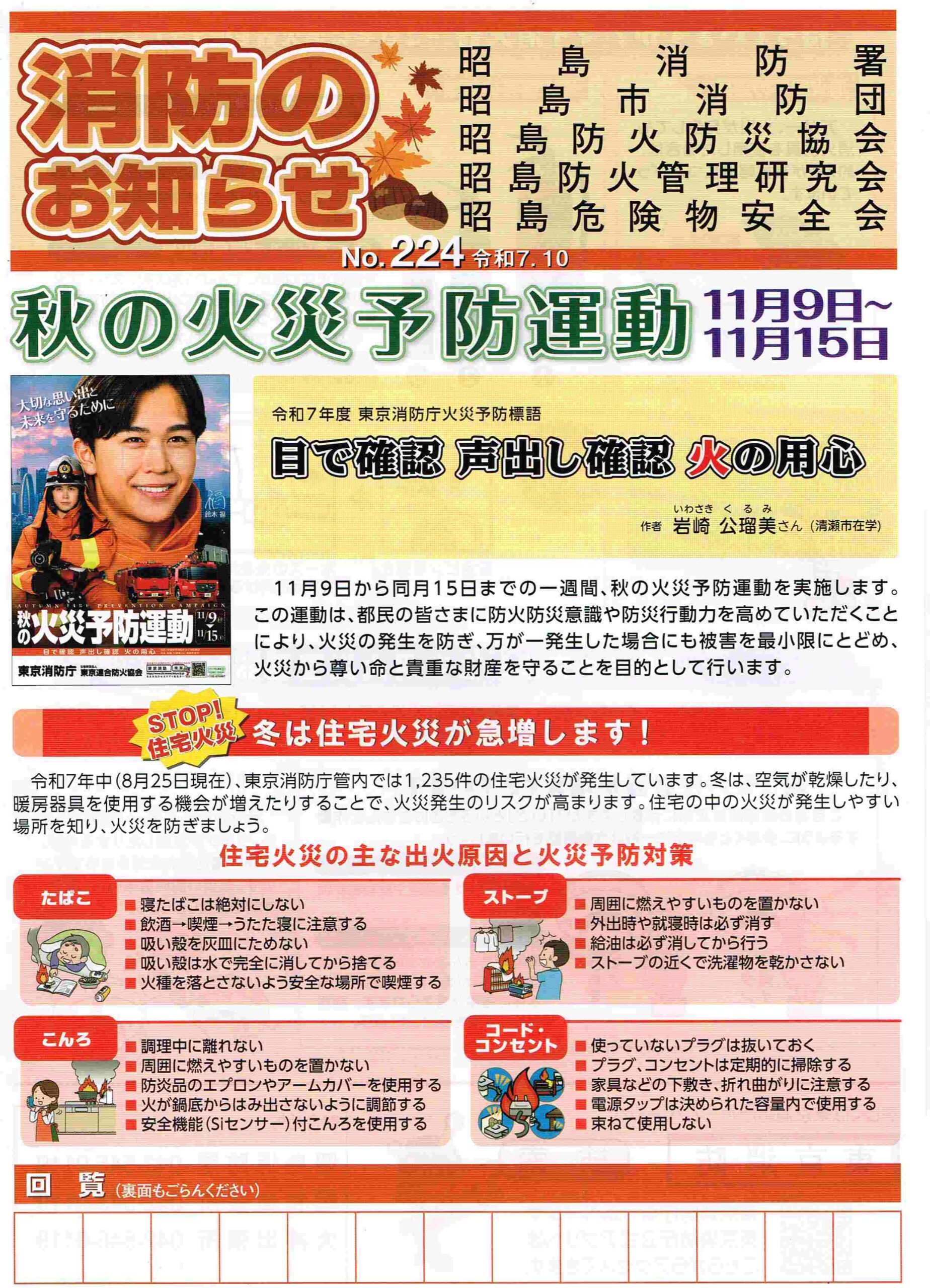 消防のお知らせ No.224🌰