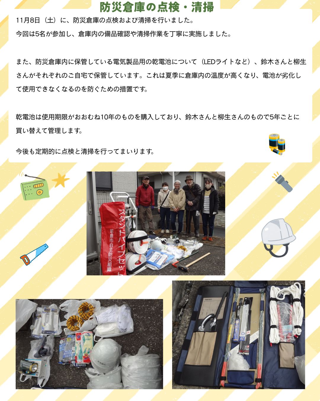 2025年11月 防災倉庫の点検・清掃を実施しました