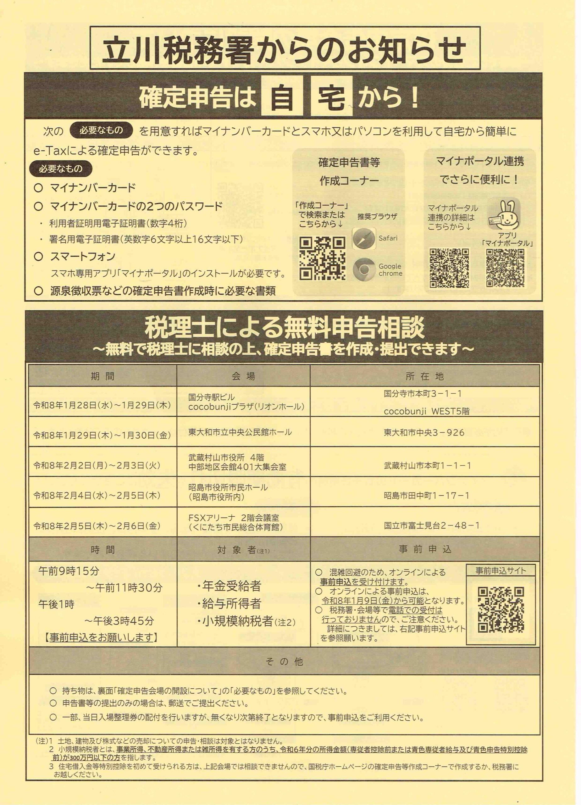 立川税務署からのお知らせ
